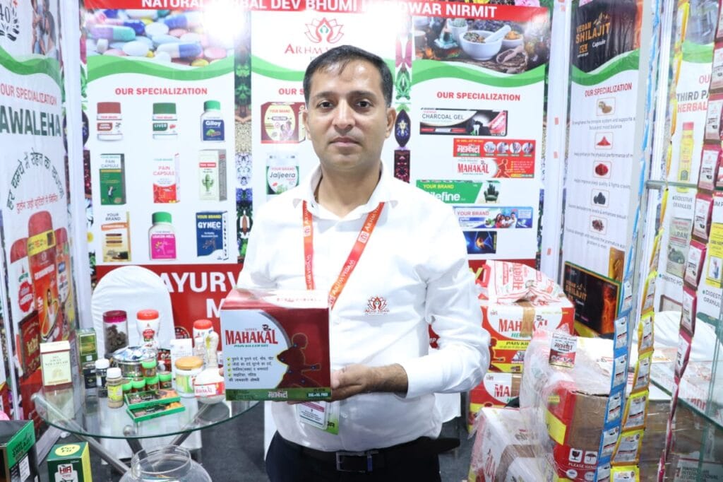 Visitors were particularly drawn to the company’s flagship offerings — Shree Mahakal Painkiller Oil, Balm & Powder, Ganga Baan Hair Oil, Vaishnavi Hing, and Vedam Shilajeet Resin. Live product demonstrations, interactive trials, and personalized consultations at the Arhm Vedam booth created meaningful engagement, leaving a lasting impression on both consumers and distributors alike.